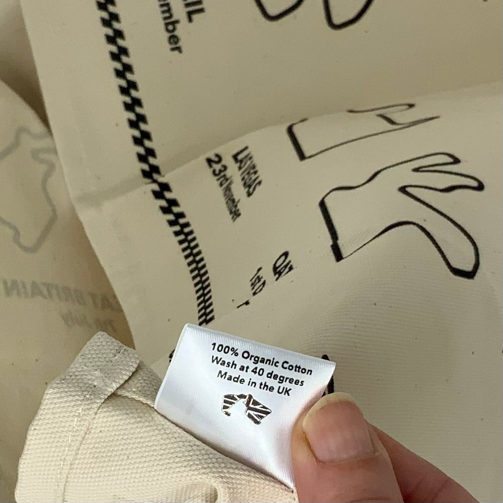 Our tea towels are made from 100% organic cotton, milled in Yorkshire. The tea towels are packaged with a card wrap, which is fully recyclable.